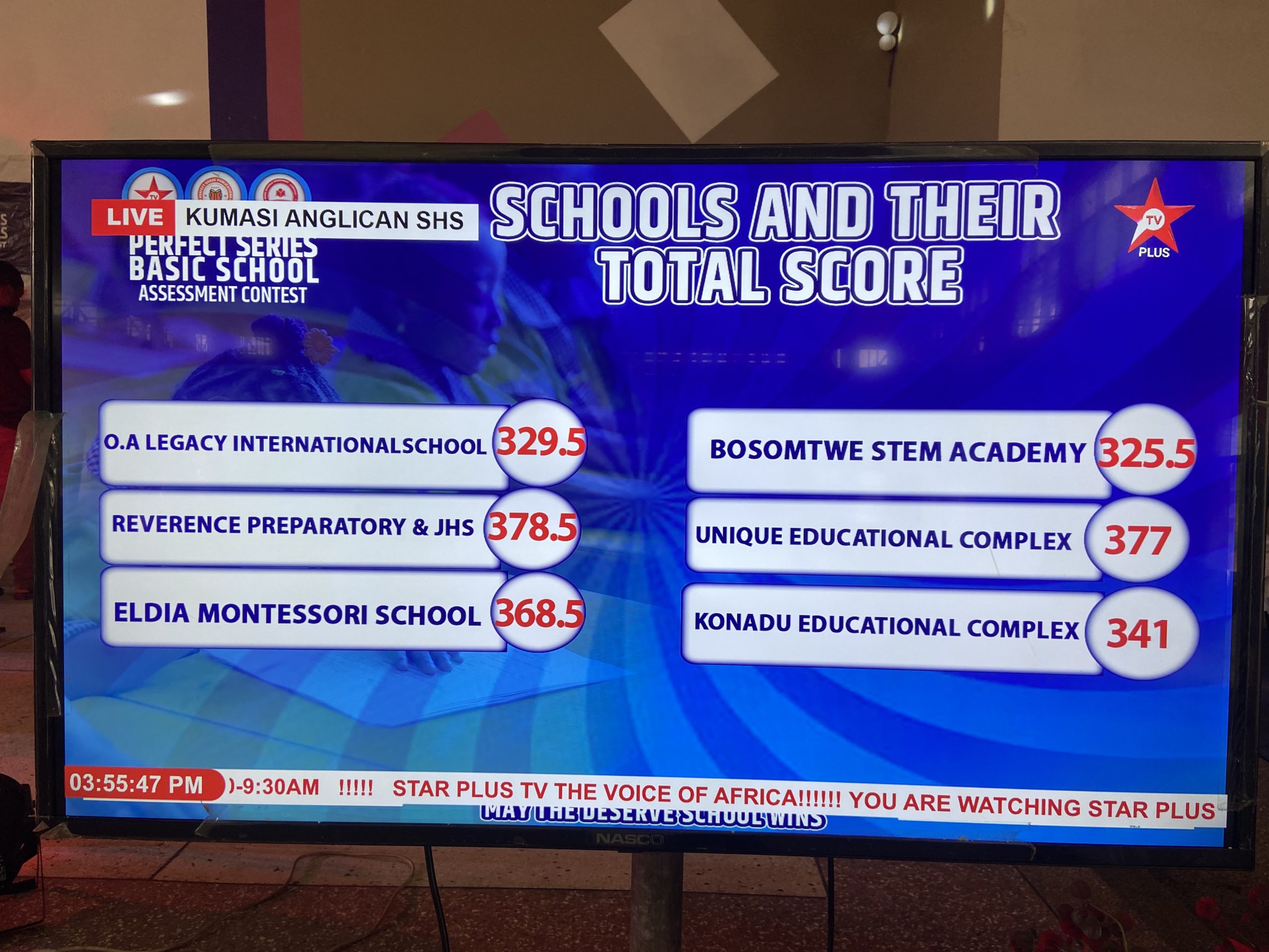 Konadu Educational Complex placed fourth with 341 points, O.A Legacy International School came fifth with 329.5 points, and Bosomtwe STEM Academy finished sixth with 325.5 points.