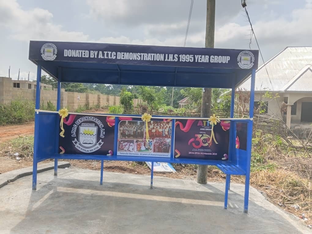 The 1995 year group donated a newly constructed Bus Stop Stand Terminal, exercise books, and other educational materials to the school to support teaching and learning.